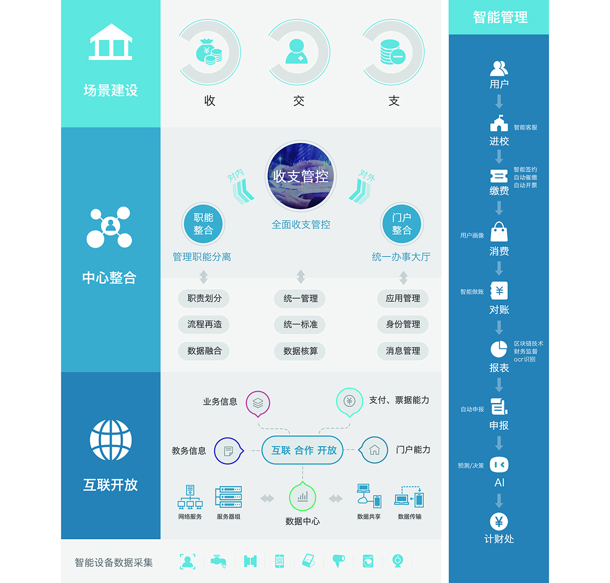 围绕人和职能的管理,细分服务场景,提供以技术为主导的互联互通的智能化服务