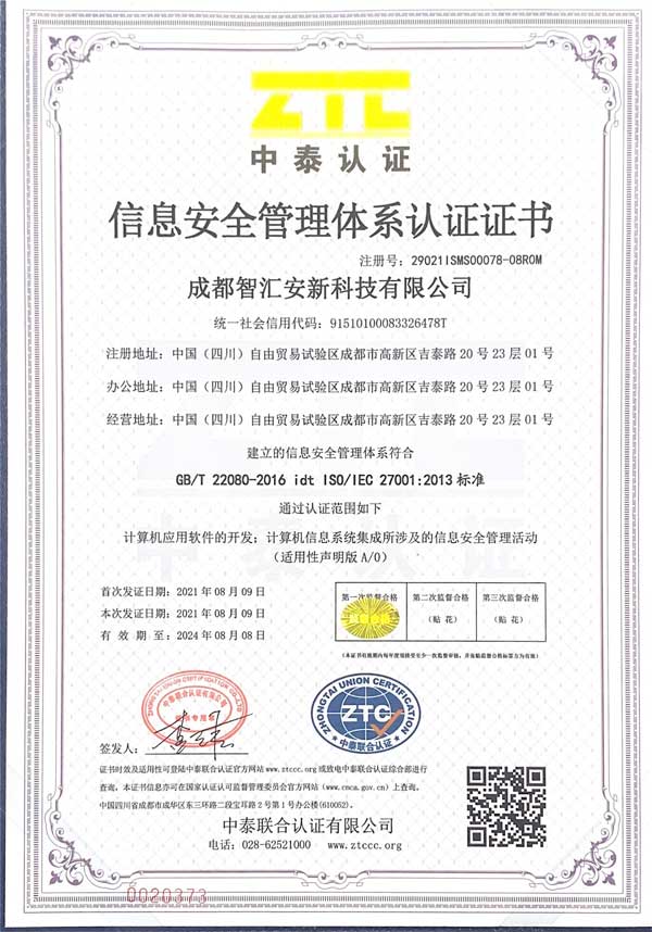 热烈祝贺我司通过ISO9001、ISO27001、ISO27001三体系年度认证。